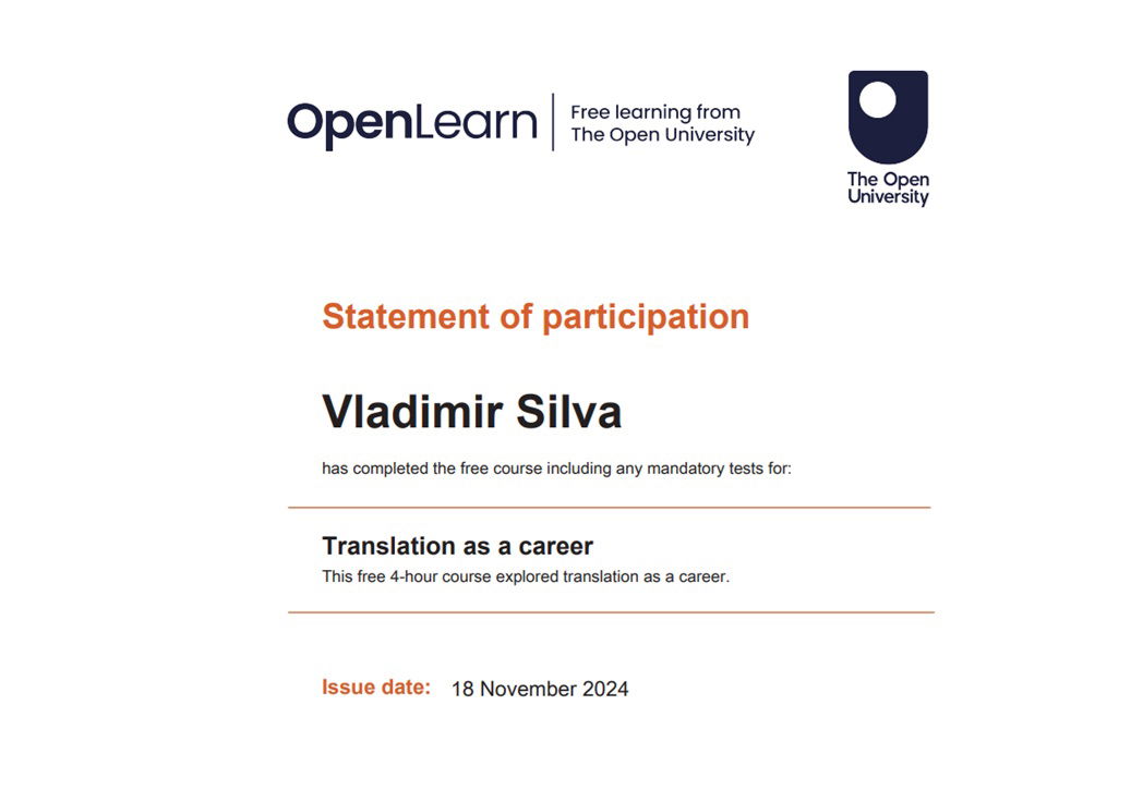 • In 2024, I began my career transition into translation by completing several courses in the field, which are listed in my CV.